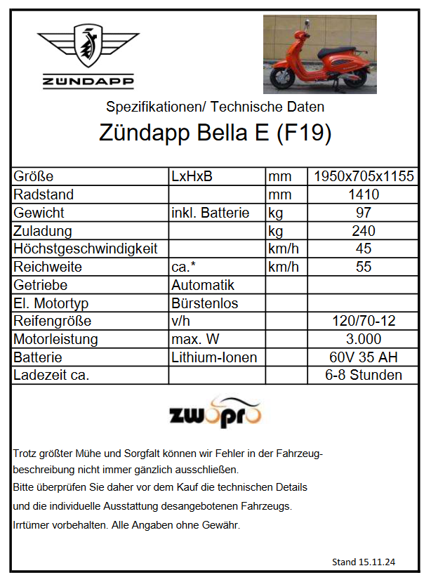 Der bekannteste Zündapp E-Motorroller Welt ist die Bella E. Dieses Modell nimmt die Formgebung der klassischen Zündapp-Motorroller auf uns übertragt die Designmerkmale in die Gegenwart. Gepaart mit moderner Technik, einem BOSCH-Hinterradmotor und einem, top ausbalancierten Fahrwerk. Damit fährst immer und überall sicher, sportlich und trotzdem komfortabel.